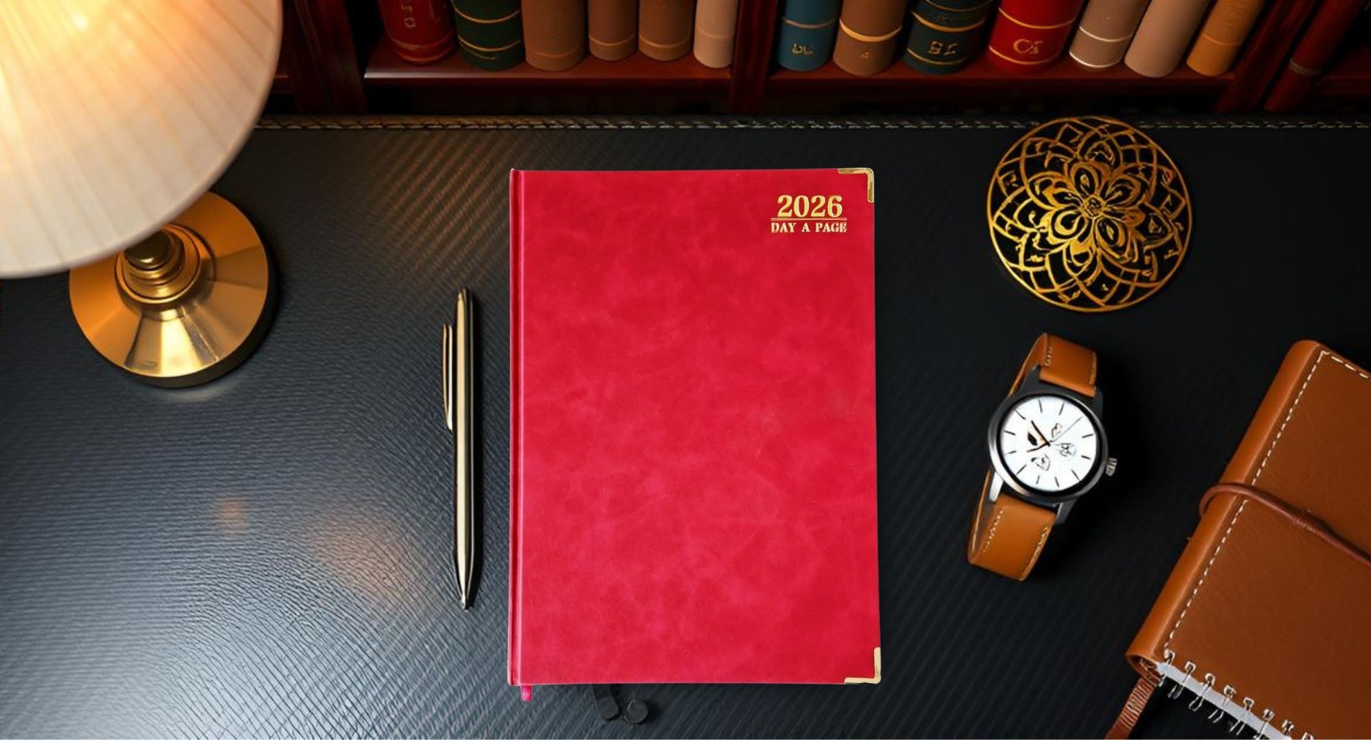 Durable PU leather hardback with gold corner protectors and decorative gold page edges. Includes a ribbon marker so you can quickly flip to today's entry.