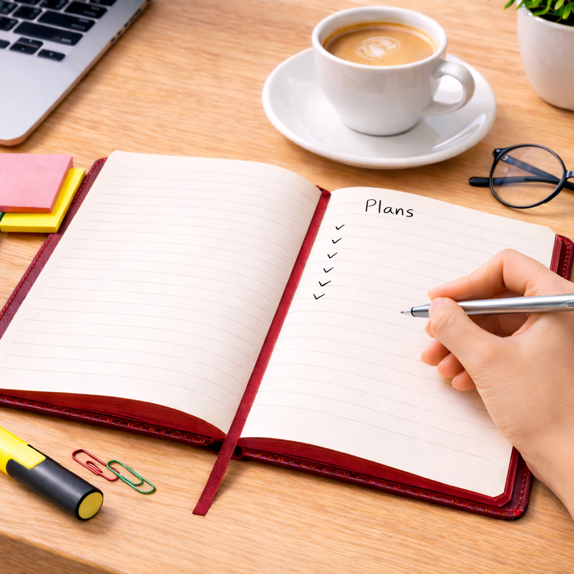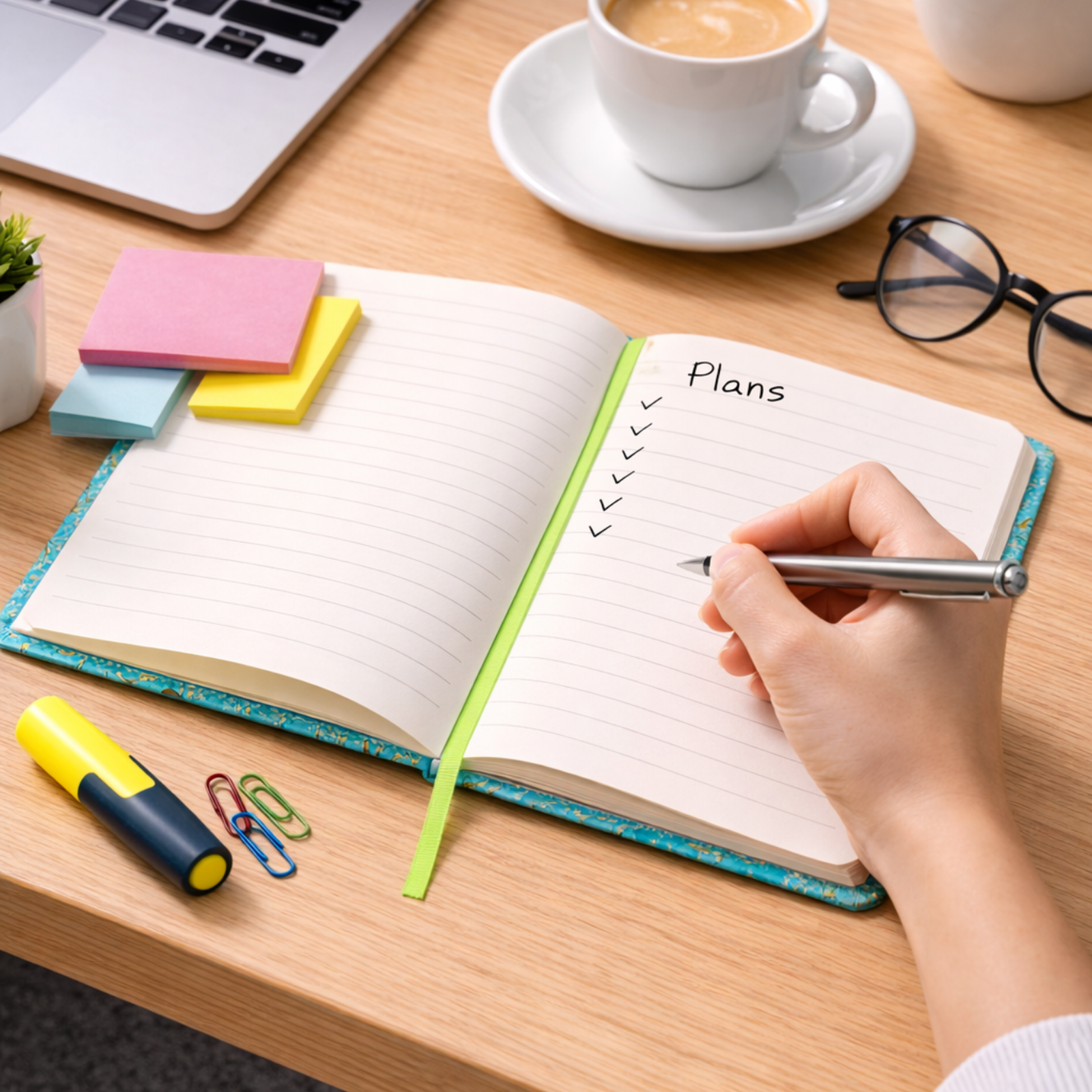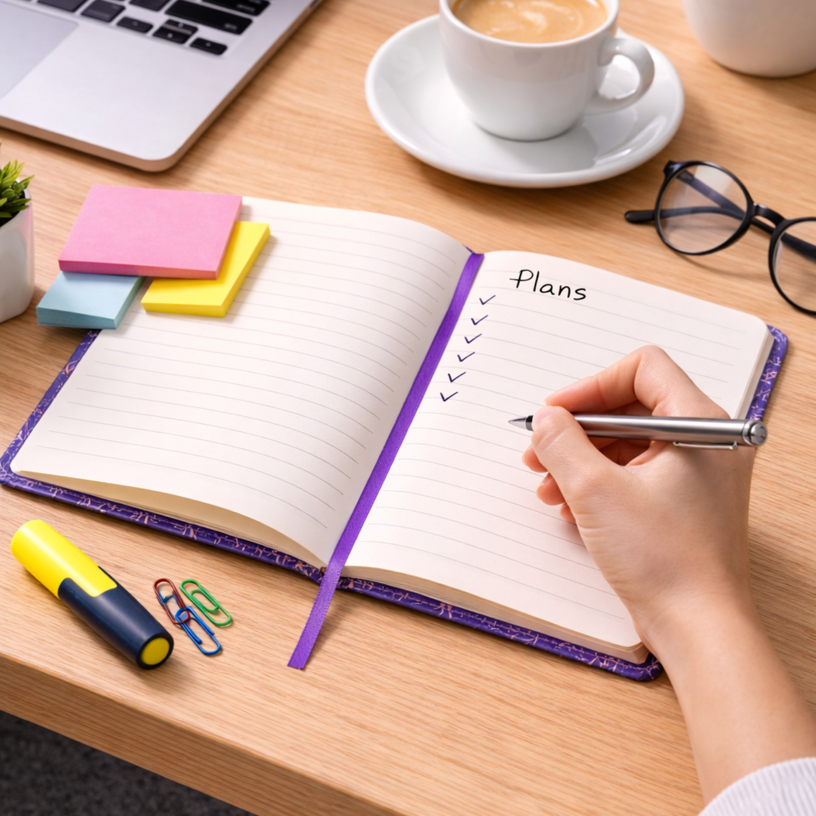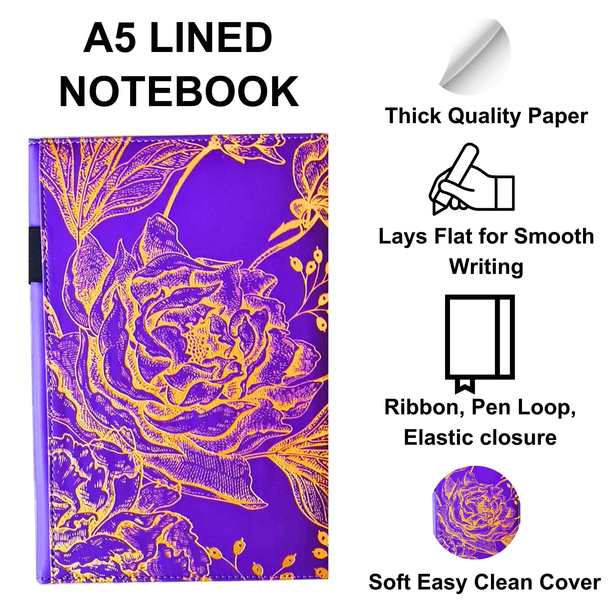 A premium A5 lined notebook designed for everyday writing — ideal for notes, journaling, lists, planning and work tasks.
